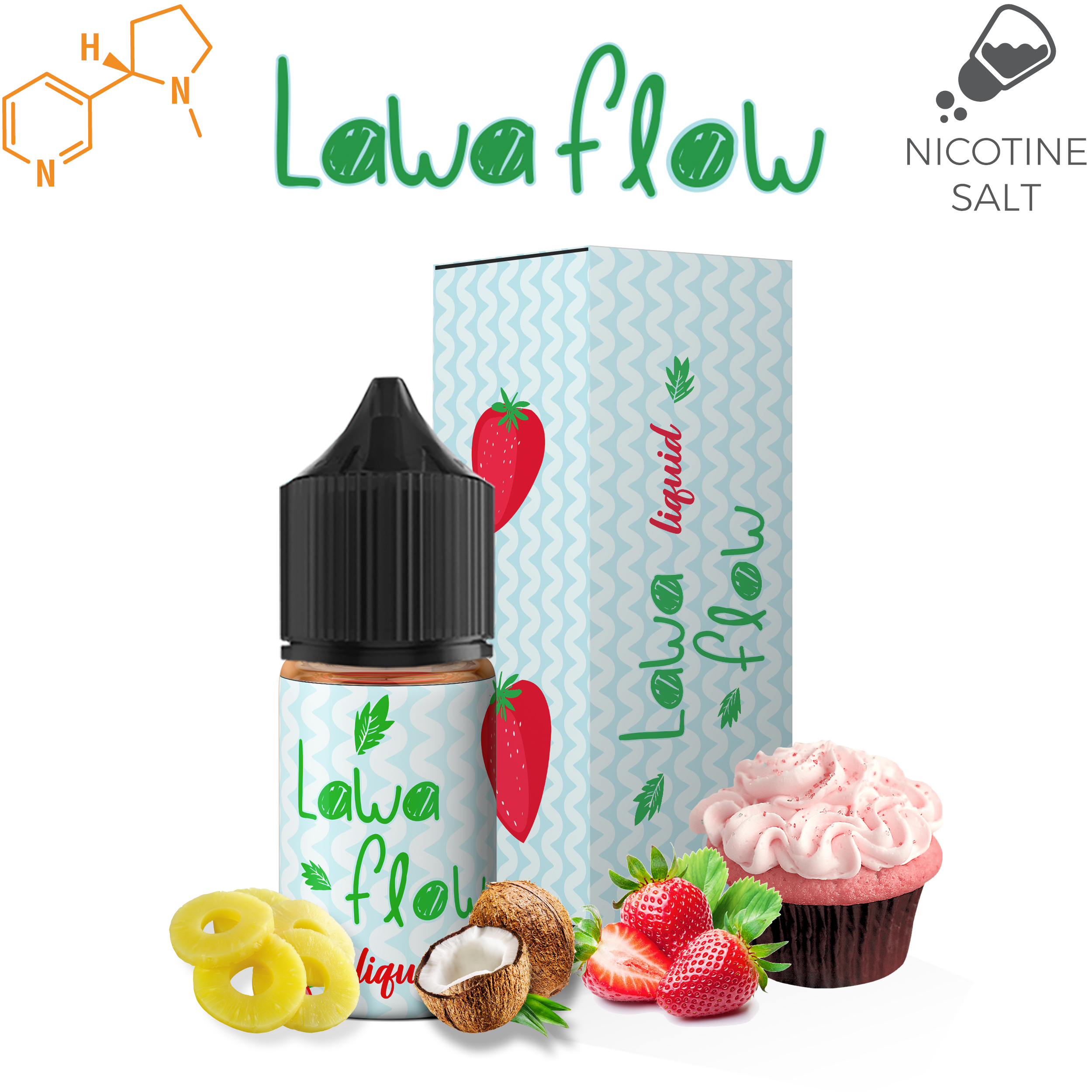 Lawa Flow Salt Likit; Smoke Hunters grubunun Çilek, Hindistan Cevizi, Çeşitli Kremalar ve Ananas tadıyla Lawa Flow salt versiyon likitidir.
